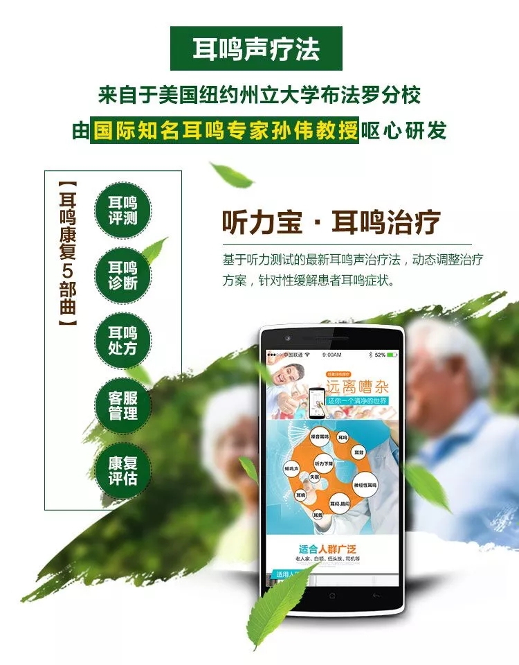 听力宝耳鸣改善方案,是一种匹配每个人听力损伤情况而定制的个性化耳鸣改善音乐。通过按计划的聆听这些具有缓解功效的音乐,达到改善耳鸣的效果。目前市面上的耳鸣产品改善率不到15%,听力宝耳鸣改善率高达26%,能够有效缓解患者耳鸣、减少耳鸣影响。