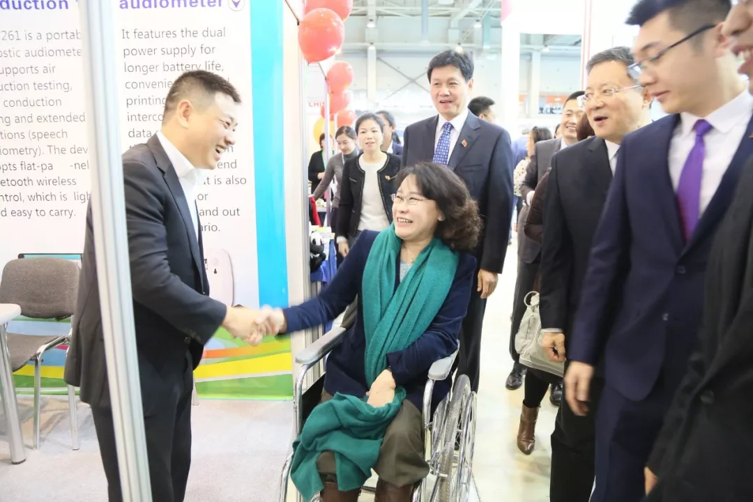 公众号2019年10月31日-11月2日,豆听科技作为中国企业亮相2019“创新科技博览会——人人参与的社会”国际专业博览会,会展期间,中国残联主席张海迪与豆听科技创始人胡拥军亲切交谈,面对豆听产品的新发展与应用,张海迪表示了高度的赞扬。肯定了便携式听力检测技术(便携式听力检测仪T200S、便携式诊断型听力计DT261)的竞争力与实用价值。