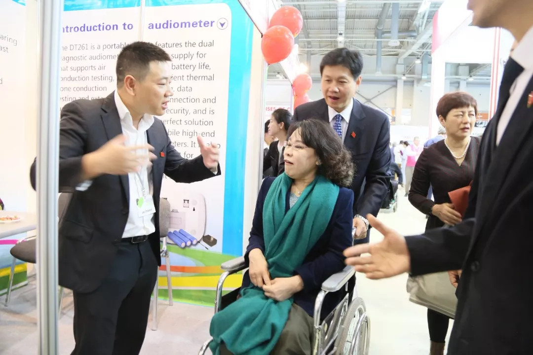 公众号2019年10月31日-11月2日,豆听科技作为中国企业亮相2019“创新科技博览会——人人参与的社会”国际专业博览会,会展期间,中国残联主席张海迪与豆听科技创始人胡拥军亲切交谈,面对豆听产品的新发展与应用,张海迪表示了高度的赞扬。肯定了便携式听力检测技术(便携式听力检测仪T200S、便携式诊断型听力计DT261)的竞争力与实用价值。