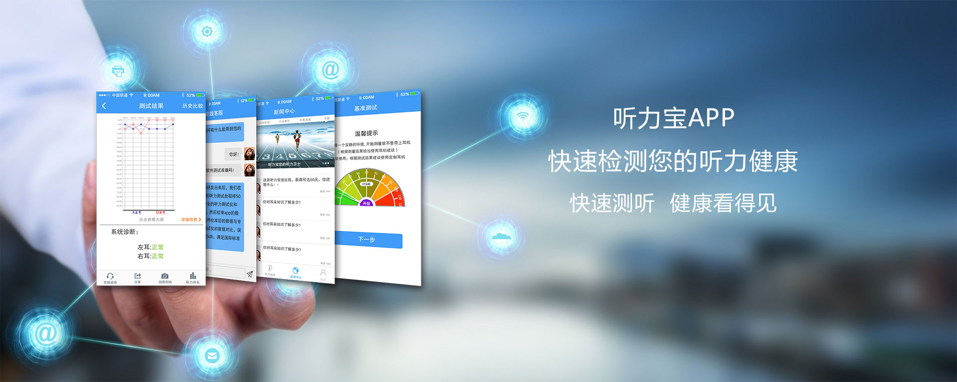 听力测试:通过手机自带耳机或便携式听力检测仪即可在家测试听力健康,进行初步听力筛查。